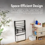 The Essence of Practical Elegance: The Menshar Gullwing QuickFold Airer Rack embodies efficiency and style. Influenced by minimalist design. it integrates seamlessly into modern homes. addressing daily laundry challenges with its space-efficient. foldable structure and rust-proof build. epitomising practicality and sustainability.