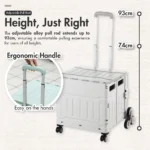- Ergonomic Handle: The comfortable. ergonomic handle provides a secure grip. allowing you to maneuver the trolley with ease. even when fully loaded.