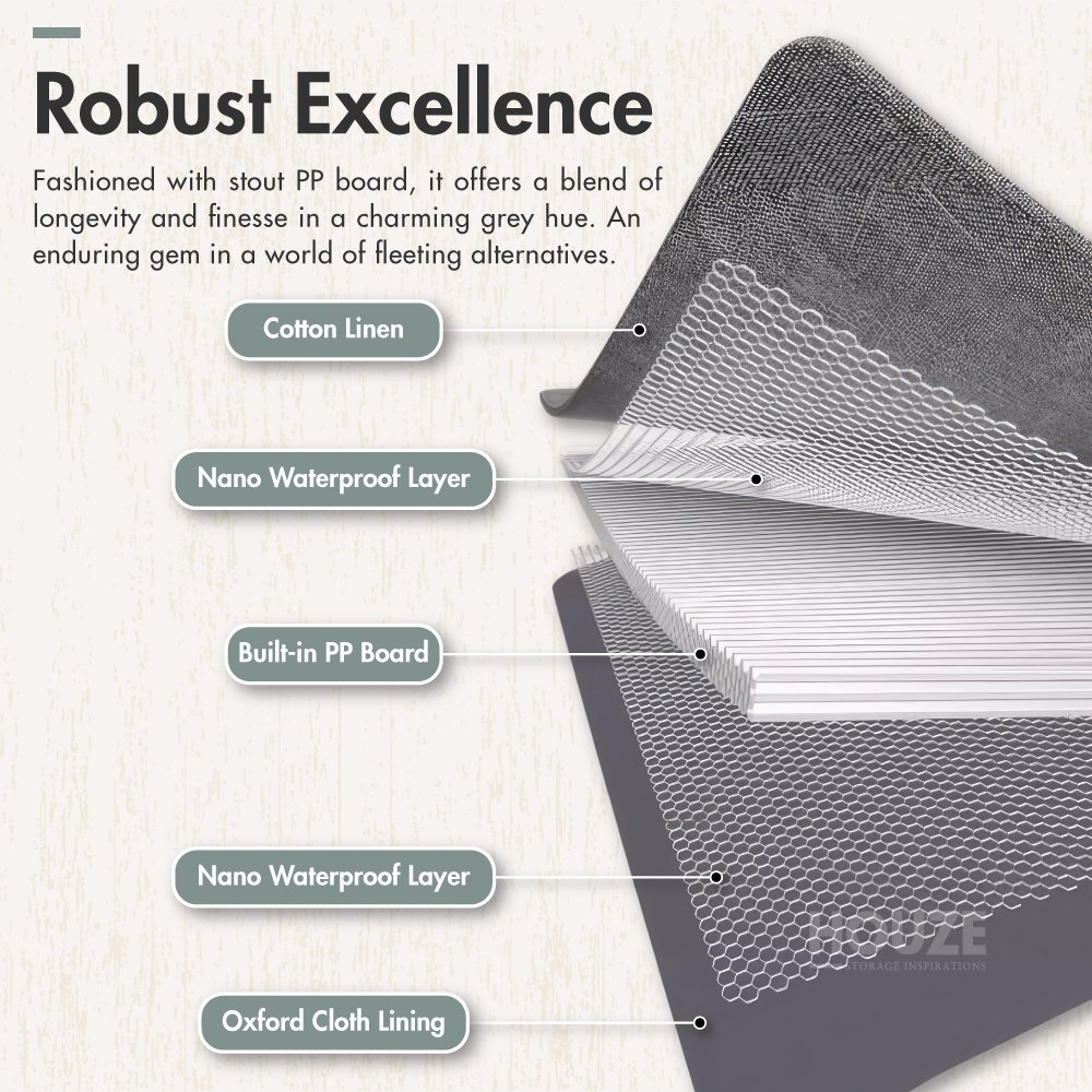 A Fusion of Craftsmanship & Functionality: Dive into the world of the HOUZE Lava Storage Box. available in sleek Grey and Beige. A masterful blend of linen fabric and robust PP board guarantees a lasting impression. Drawing from modern aesthetics and utility. it’s the ideal pick for today’s sophisticated interiors.