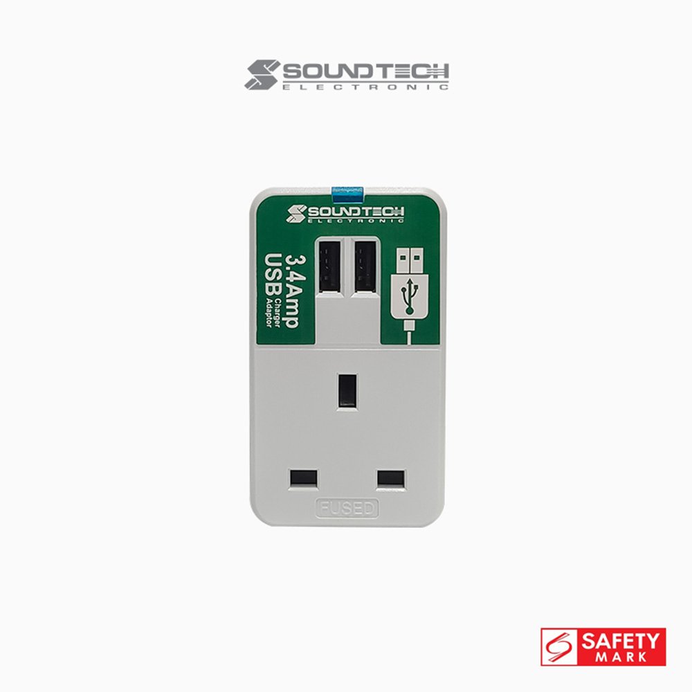 SOUNDTECH – 3Outlets Adaptor with Dual 3.4A USB. BLACK | BLUE | WHITE