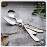 Delight in Italian finesse with the Table Matters’ Milan Stainless Steel Dinner Fork. Dinner Spoon. and Soup Spoon at your table. This collection. a masterpiece inspired by the chic streets of Milan. brings a touch of this fashion haven into your home. Each fork and spoon is a work of art. sculpted from premium SS304 stainless steel. marrying luxury with endurance. Ergonomically designed. these dinner forks. spoons. and soup spoons are a joy to hold. ensuring your comfort with every bite. And with the practicality of being dishwasher-safe. it is a paragon of effortless sophistication.